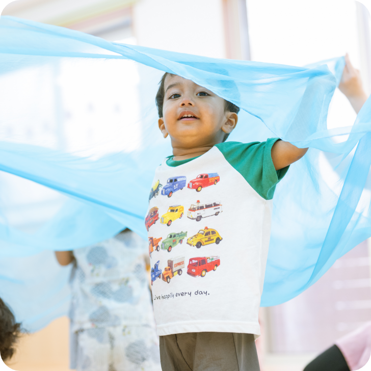 - 雨の日でも安心して過ごせるよう、工夫された室内遊びを用意。体を動かす遊びや創造力を育む遊びを通して、子どもの成長を多方面から支えます。