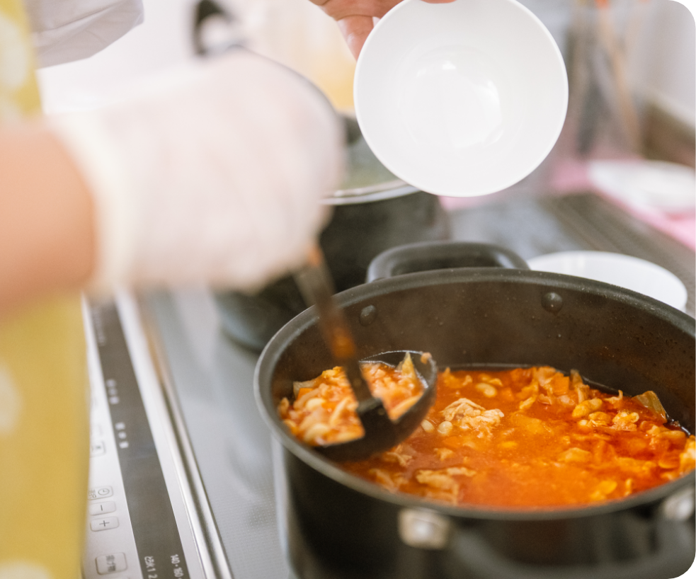 - 栄養バランスに配慮した温かい手作り給食を毎日用意。食べる楽しさや食への興味を育みながら、健康な体づくりを支えます。